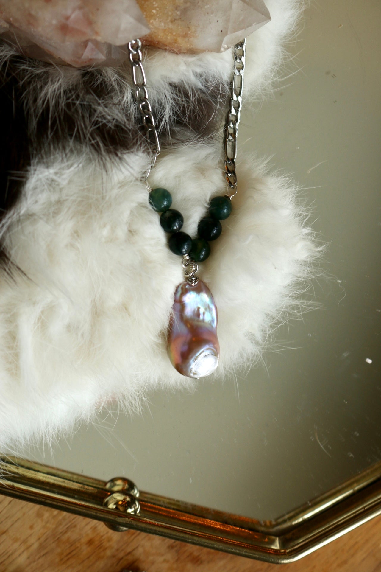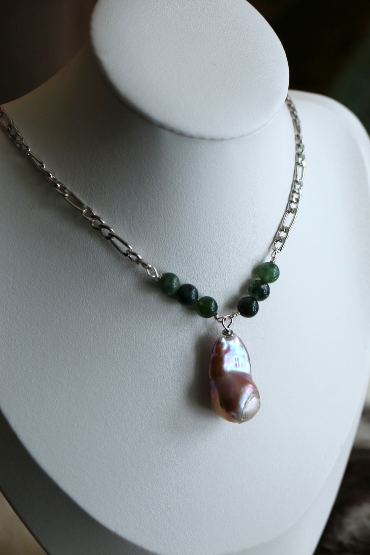 Stone Type: Baroque Pearl & Moss Agate Beads