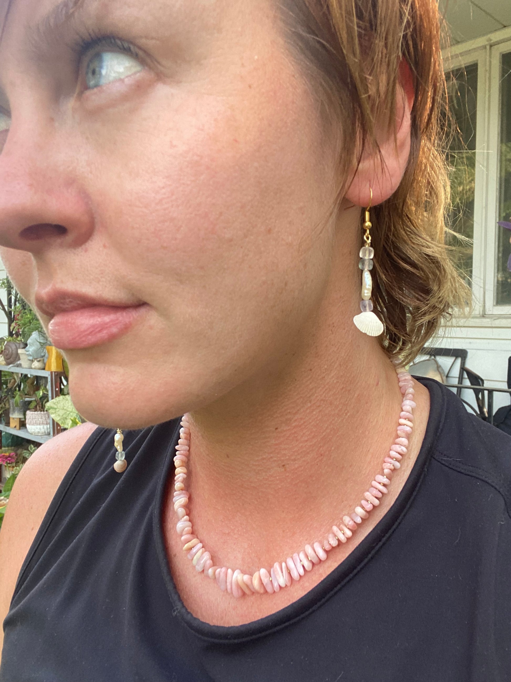 Stone Type: Hand-Collected Seashells from the Gulf, Vintage Genuine Pearl, and Rainbow Fluorite