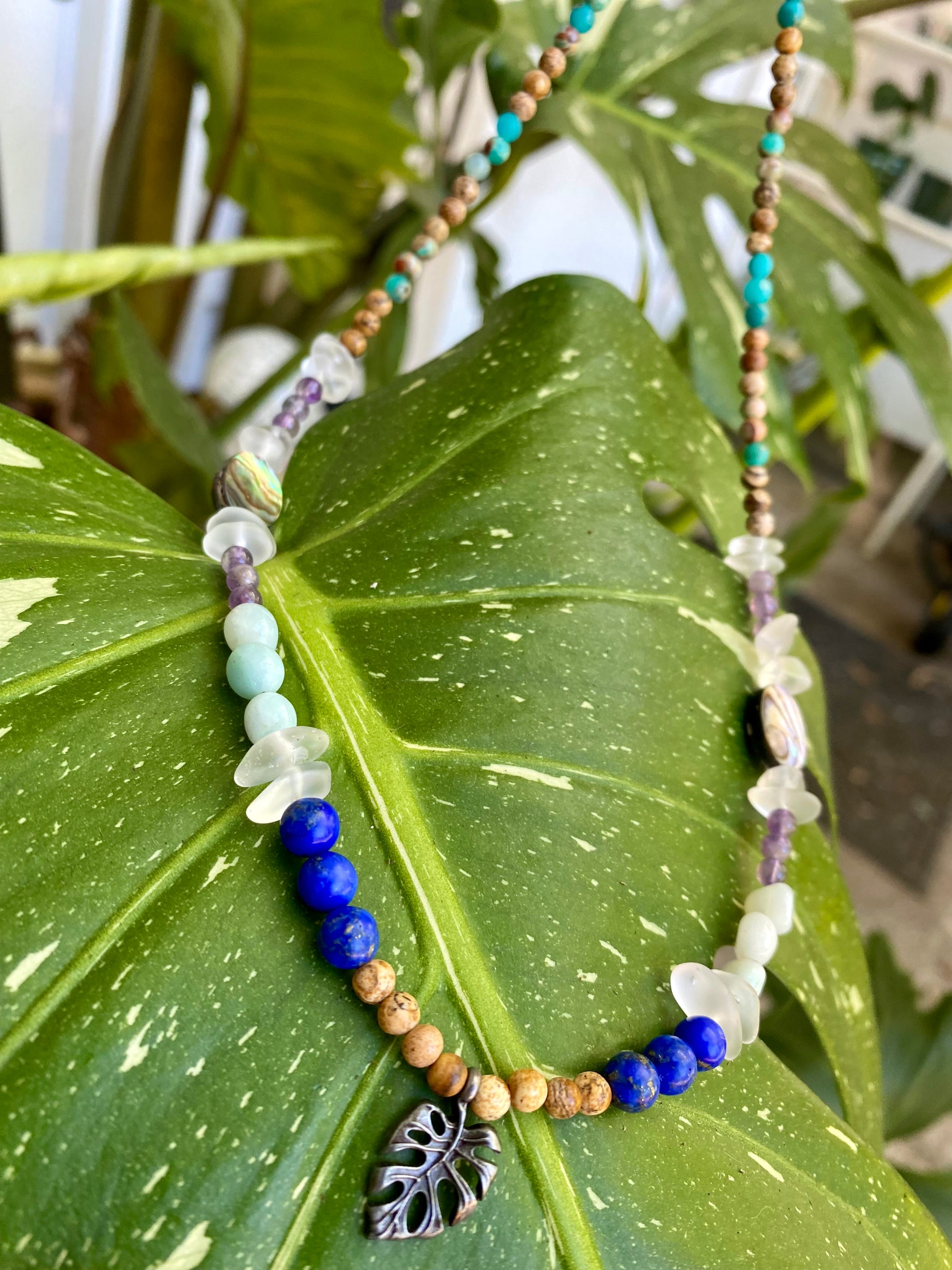 Stone Type: Picture Jasper, Clear Quartz, Crysocolla, Amethyst, Abalone