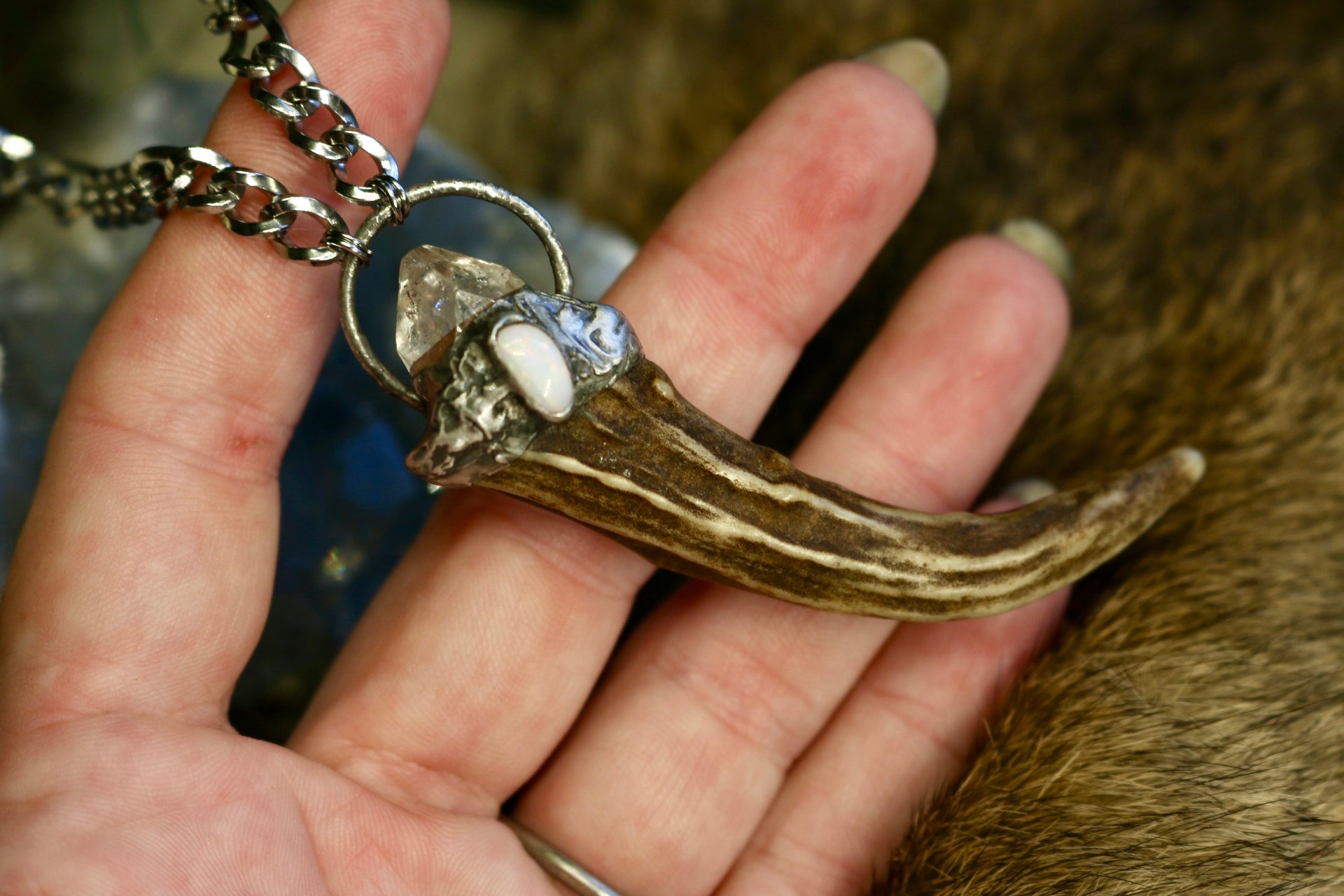 Embrace the serene beauty of winter with our Wintry Weather-inspired jewelry collection. Crafted from natural crystals, antlers, and leather, each piece captures the essence of the season, grounding you in nature's raw elegance. These unique designs evoke a sense of protection and tranquility, perfect for the colder months when you seek comfort and strength. Wear a reminder of the season's quiet power and let these natural elements guide you through the winter with grace and resilience.